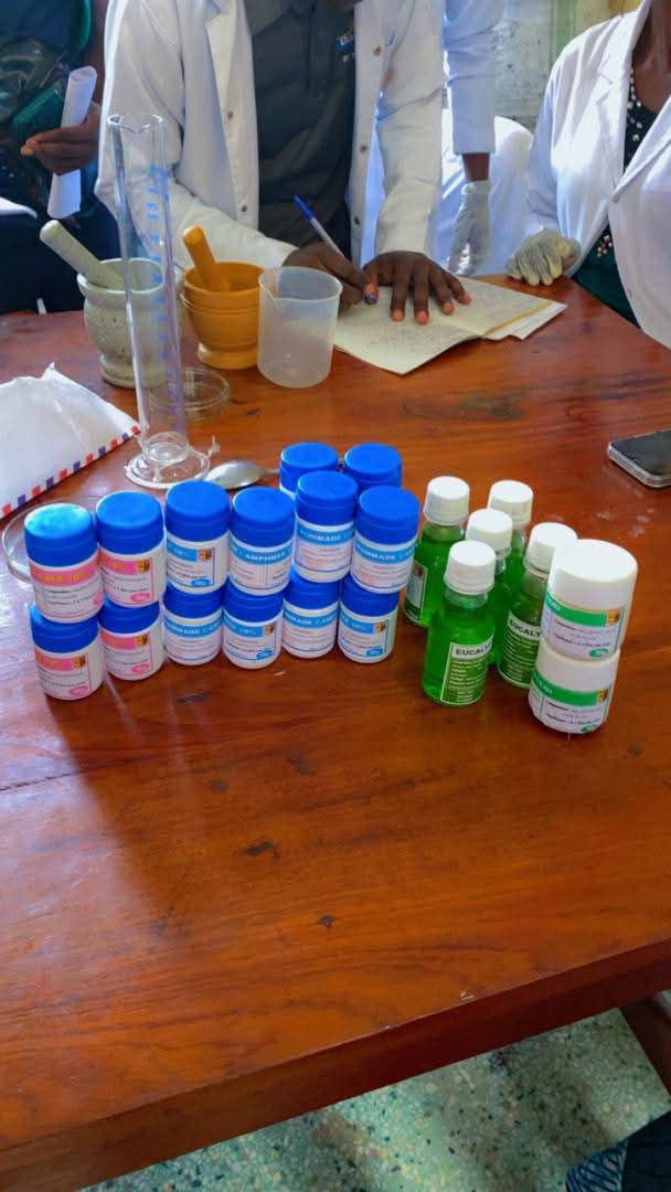 Les étudiants de Bac 2 et Bac 3 Techniques Pharmaceutiques (TEPHAR) de l’ISTM Nyankunde ont réalisé plusieurs produits pharmaceutiques et assimilés au cours de leurs travaux pratiques au mini-laboratoire, notamment des pommades camphrées et à l’oxyde de zinc à 10 %, des pommades antigales, un sirop d’eucalyptol et une mayonnaise. Ces activités, menées sous l’encadrement du Pharmacien Marcus Anyole, témoignent du renforcement des compétences pratiques, du respect des bonnes pratiques de laboratoire et de la qualité de l’enseignement professionnalisant dispensé à l’ISTM Nyankunde.
